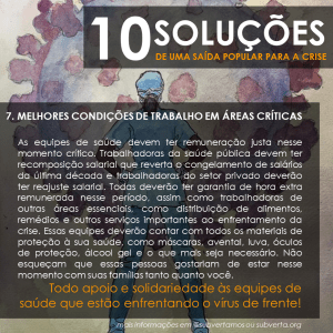 E aí? O que você acha dessas medidas? Pensou em outras que também são importantes? Comenta aí e vamos juntos construir essa saída popular para a crise!